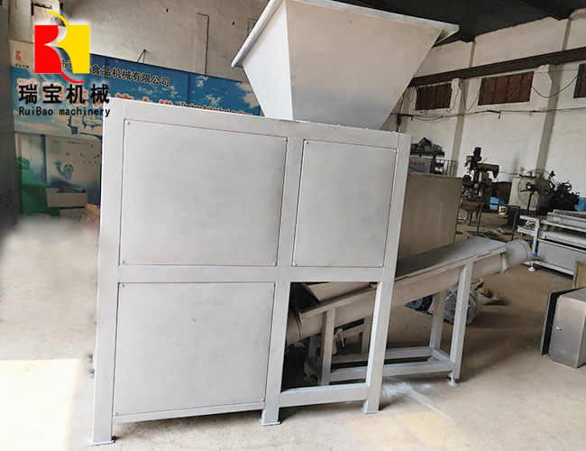 凍盤粉碎機是肉食品加工中常用的一種切割機器,它可根據肉食品加工工藝要求,配用不同孔徑的網眼板,把原料肉切割成多種大小不同的顆粒。本機采用偏制式進料,出料快速流暢,切割后的肉餡溫度溫升很低。凡與肉料接觸的零件:如工作螺桿、工作室、擠壓套、料斗、主刀座、機殼均有不銹鋼制造,完全符合食品衛生要求,特別是工作螺桿,是由不銹鋼正體手工焊制而成,強度高。