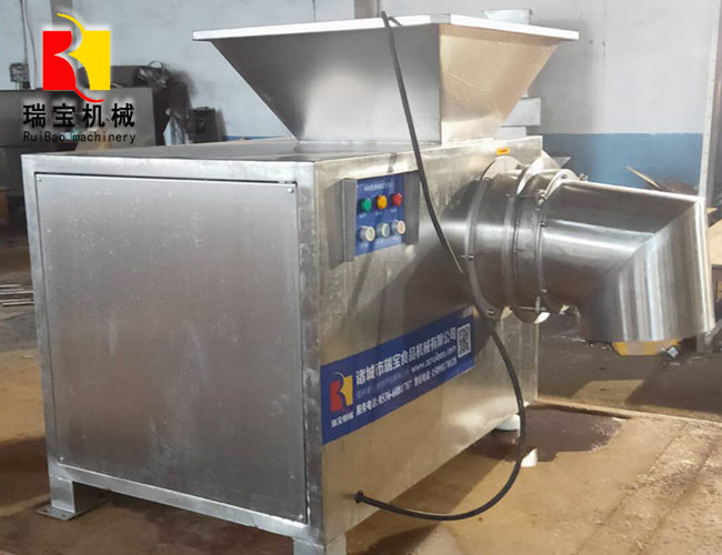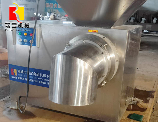 400型絞切機是一款用于水果、蔬菜的切碎設備。依靠螺桿將料斗箱中的原材料推到預切口處,通過螺桿旋轉擠壓的作用力使孔板和絞刀產生相對運轉進行絞切,從而將原材料絞切成顆粒形狀,顆粒形狀的大小可根據物料需求進行孔板的更換,確保了物料絞切的均勻性,快速切割。設備整體采用304不銹鋼制造。